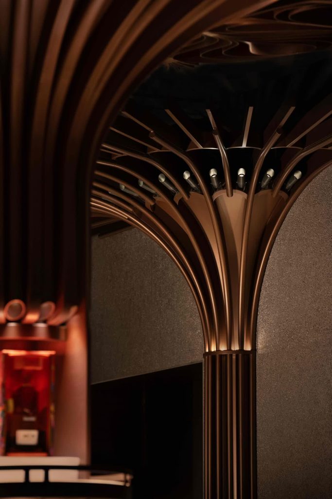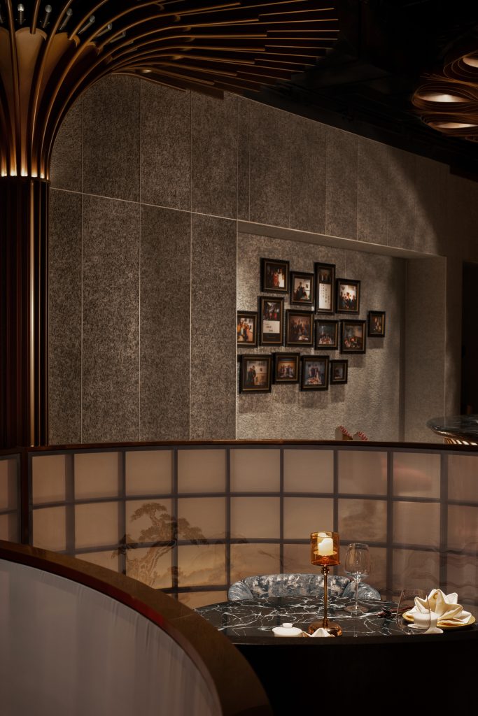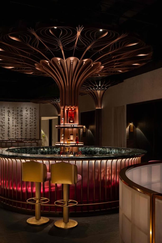这家520平米的餐厅位于重庆具有里程碑意义的摩天大楼的顶层,厲家菜重新诠释了中国宫廷美食。DCDA受古代青铜器皿、折叠扇图案和宋代美学的启发,该项目融合了工艺和技术,以3D打印艺术面板、定制照明和蚀刻青铜饰面为特色。空间像活卷轴一样展开——沉浸、精致,植根于中国文人传统的精神,构建出一个既具东方哲学深度又充满未来感的餐饮空间。